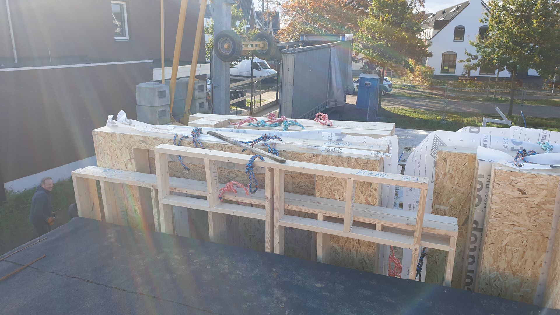 5% bouwt met hout in Nederland. Lady Penelope ontwerpt en realiseert houten huis. Productie door Letse producent. 32000 kilo CO2 opslag en stikstof arme bouw. 2 Vrachtwagens = 1 huis van 140 m2. 7 dagen zelf in elkaar gezet met een team van 3/4 man/vrouw. Made in Europe.