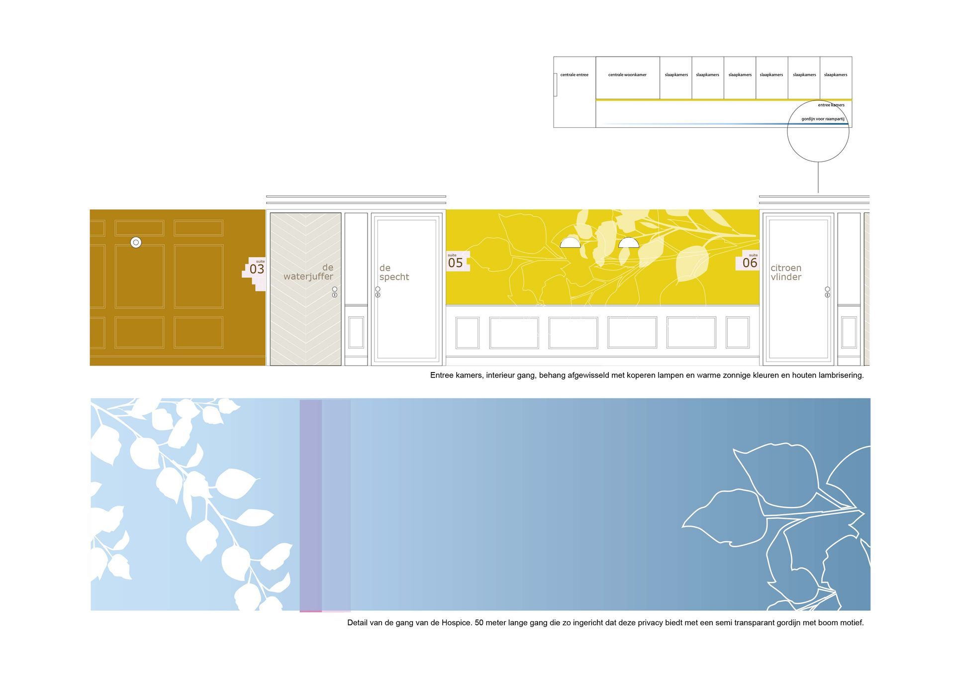 Een lichtwand met een geometrisch bloemenpatroon herbergt negen nissen. In deze nissen kan een herinnering geplaatst worden. De vormgeving van de ruimte laat zich niet vangen door de stigma’s die herdenkingsruimtes met zich mee brengen. Integendeel: De ruimte is lichtvoetig en ongedwongen. Het is er aangenaam, het licht fris en zacht. Een, speciaal ontworpen, handgemaakt, herdenkenissenboek biedt ruimte voor een blijvende herinnering aan alle bewoners voor de komende eeuw.